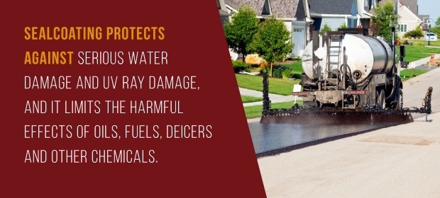Some businesses may think that sealcoating is useful but simply not worth the time and money. However, sealcoating provides invaluable benefits that are well worth the investment. It protects against serious water damage and UV ray damage, and it limits the harmful effects of oils, fuels, deicers and other chemicals. It provides a sleek finish that will give your business an aesthetically pleasing finish, and it saves you the hassle and expense of major repairs down the road.
