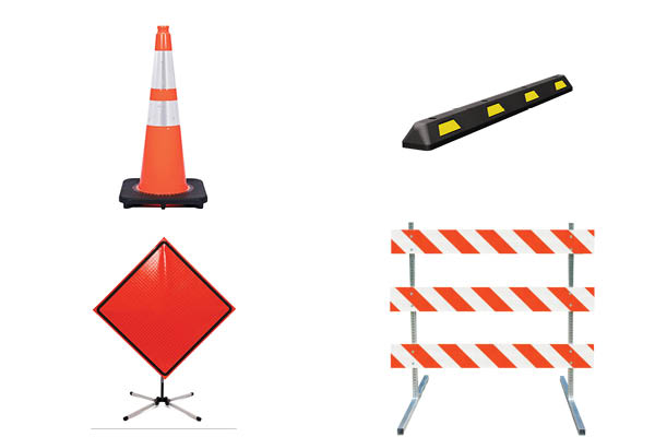 In addition to both aluminum and roll-up construction signs, our traffic safety inventory includes traffic cones, Type I, II, and III barricades, flags, rigid & roll-up sign stands, stop and slow paddles, delineator posts, bumper blocks, and speed bumps.